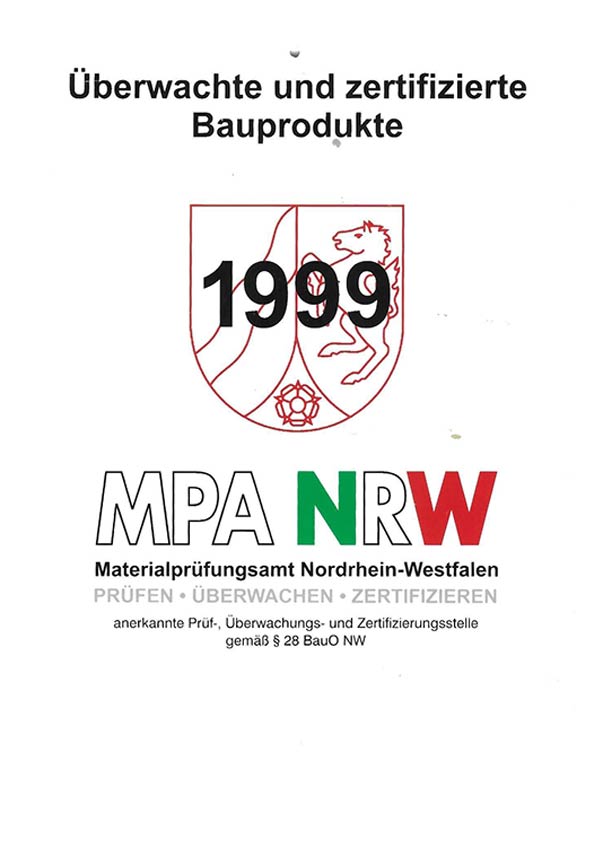 seit 1999 durchgängig Materialprüfungsamt Nordrhein-Westfalen zertifiziert