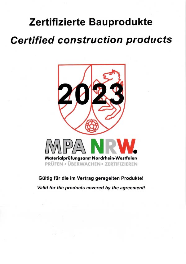 MPA NRW zertifizierte Bauprodukte